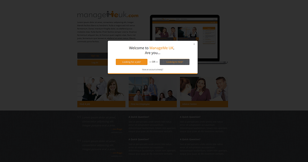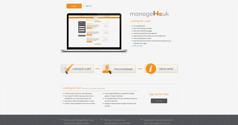 ManageMe is a new start up forging their way forward with a brand new recruitment website. Designed from the ground up this site aims to re-think the 'normal' way of doing things and question can this be done better?